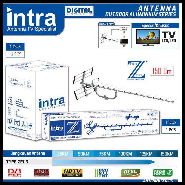 _ HT0 Antena TV Digital UHF VHF Outdoor LCD LED INTRA INT-ZEUS 125KM ✹ ✌ | Shopee Indonesia