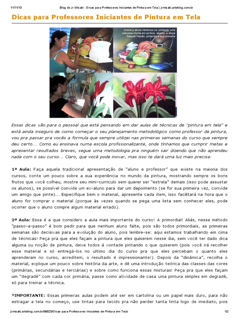 Blog Do Jr Misaki - Dicas Para Professores Iniciantes de Pintura Em Tela _ Jrmisaki.arteblog.com | Pinturas | Tinta