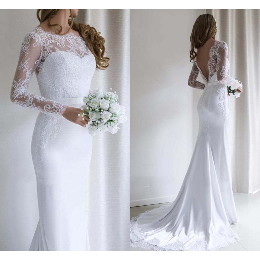 White Lace Mermaid Wedding Dress Long Sleeve Fishtail Wedding Gown Bride Dress Shopee Singapore