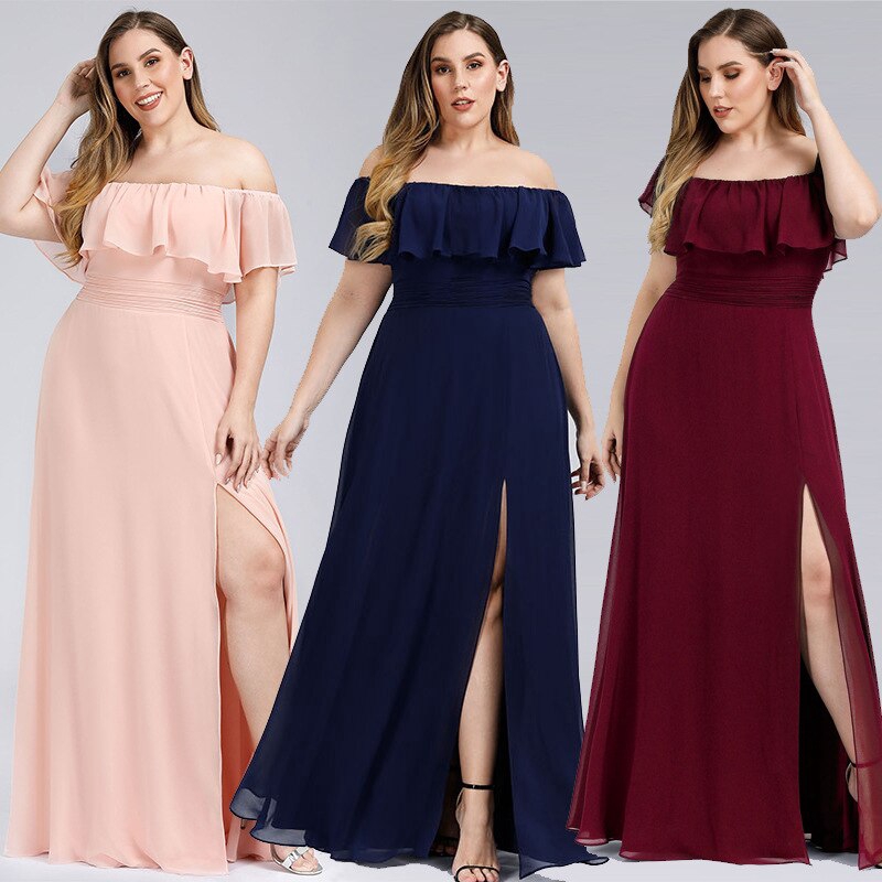 Elegant Off Shoulder Maxi Chiffon Wedding Dress Bridesmaid Dress For Wedding Party Plus Size Dress 0968 Shopee Malaysia
